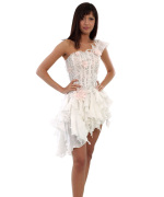В нашем магазине есть и экстравагантные предметы туалета: короткие пышные платья и платья с косым низом.